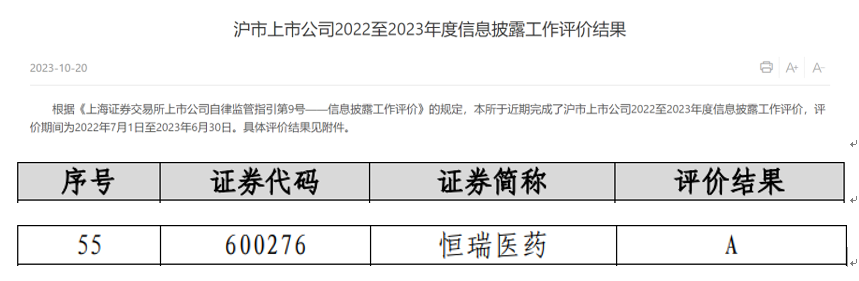 恒峰g22医药荣获上交所信息披露考评A级